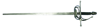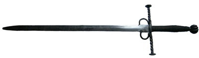 Vojni teški jednoručni mačevi različitih tipova sa prostim - krstastim rukobranom namenjeni više za sečenje nego bod. Korišćeni su u periodu od ranog srednjeg veka (merovinši mač) pa sve do poznog srednjeg veka (gotički mač) i pojave rapira. Vode poreklo od keltskog dugog mača i rimske spate. Zbog svoje težine (od 1,5 do 2 kilograma) je inerciono oružje namenjeno najvećim delom za sečenje (60:40%). Mnogi tipovi ovih mačeva sve do 10. veka (merovniški) nisu ni imali vrh namenjen bodu, a tek u 14. veku se odnos upotrebe udara i boda izjednačio na 50:50%. Zbog svoje težine udarac ovim mačem je ili ubitačan (u predelu glave i vrata) ili nanosi teške povrede na ostalim mestima zbog čega se sa njim pogoci plasiraju svuda. Tehnika njihove upotrebe je jednostavna – varvarska: udari odozgo i sa strane izmahivanjem uz široko otvaranje i uporebu sirove snage. Ovi mačevi se koriste uz upotrebu celog gornjeg dela tela i to najviše mulinetima iz ramena. Učenje mačevanja ovim mačem ne zahteva noročito dugu i stručnu obuku. |